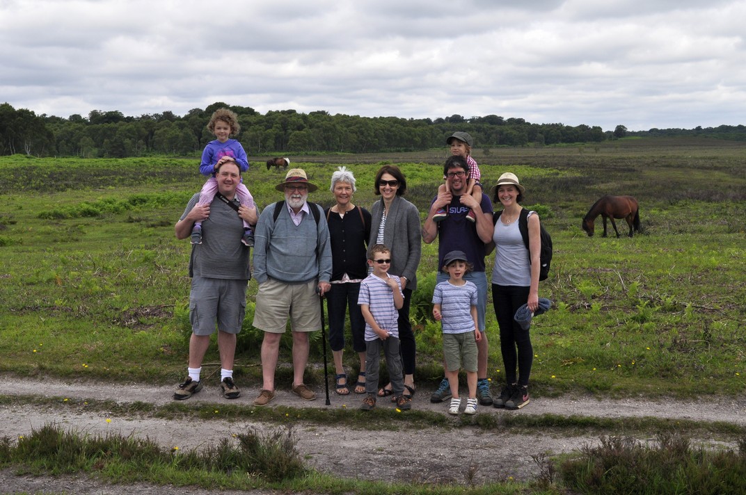 Our first group photo as a family, near Beaulieu Road station in the New Forest, 7 July 2016. L-R: Zoë, Michael, me (still using a walking stick), Steph, Callum, Hannah, Elvis, Andi, Felix, and Philippa.
