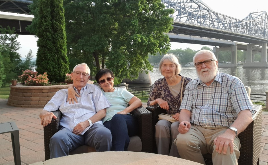 Roger and Norma Rowe, Steph and me beside the mighty Mississippi in La Crosse, Wisconsin in June 2023.