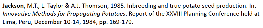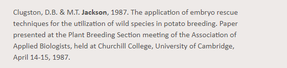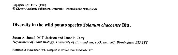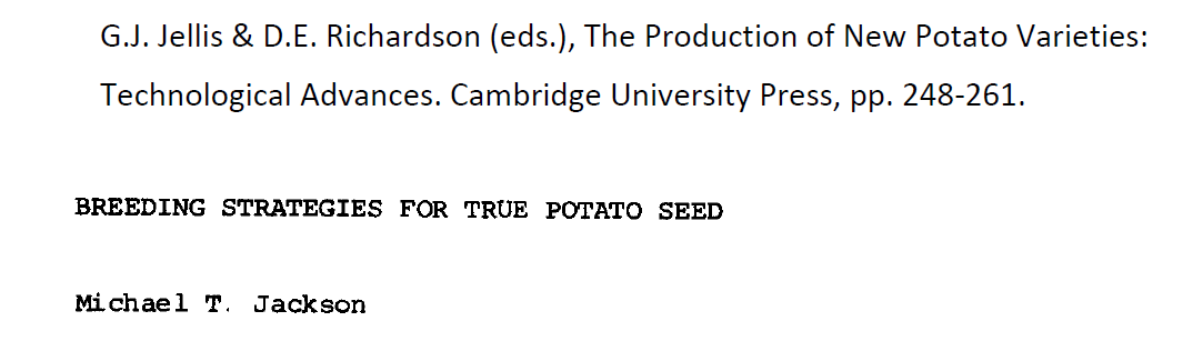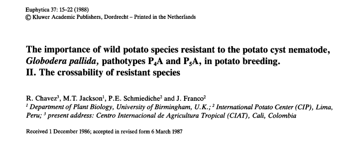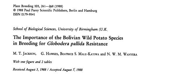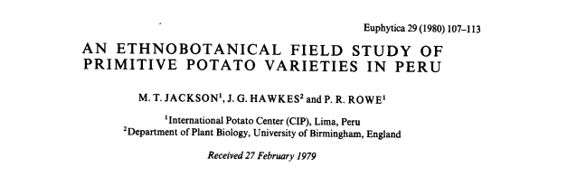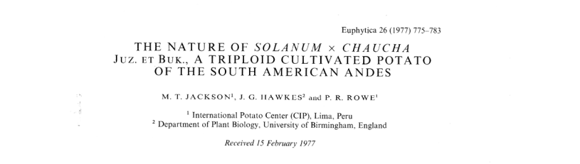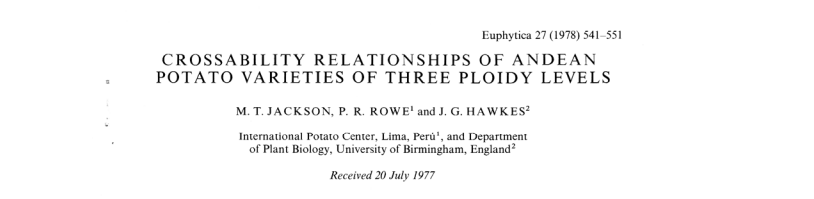 In the interim, Jack persuaded ODA to support me at Birmingham until I could move to CIP, and he registered me for a PhD program. He just told me: I think we should work on the triploids. And I was left to my own devices to figure out just what that might mean, searching the literature, growing some plants at Birmingham to get a feel for potatoes, even making a stab (rather unsuccessfully) at learning Spanish.