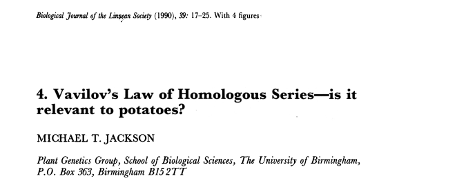 I’d completed my thesis on the biosystematics of South American potatoes, The Evolutionary Significance of the Triploid Cultivated Potato, Solanum x chaucha Juz. et Buk., at the end of September, just meeting the deadline to have the degree conferred (subject to a successful examination) at the December congregation.