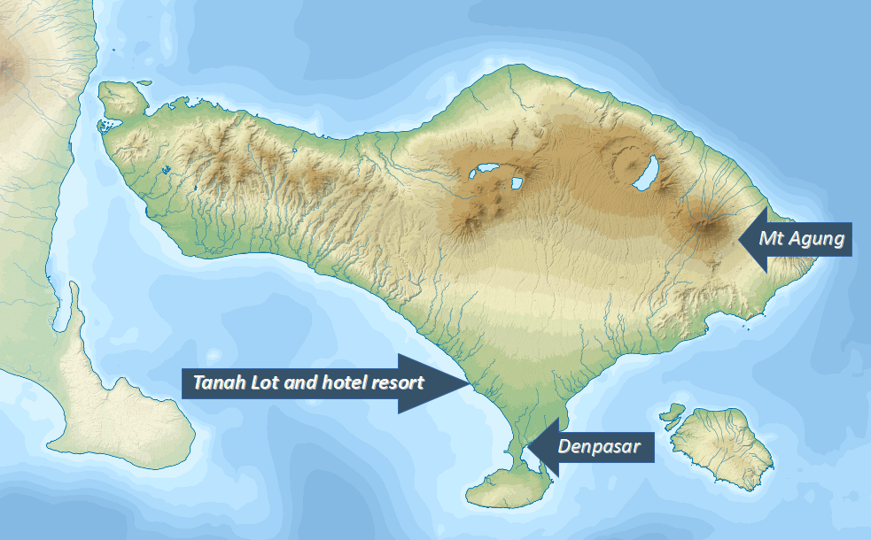 Bali’s landscapes are dominated by three volcanoes in the north and northeast, the highest of which is Mt Agung, active since 2017.