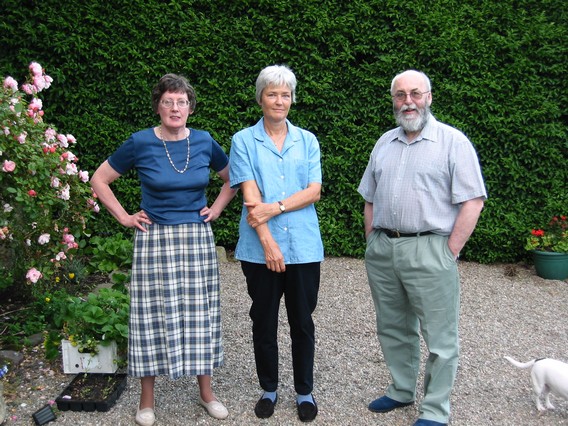 Steph with Pauline and Martin in the garden of their Crieff home.