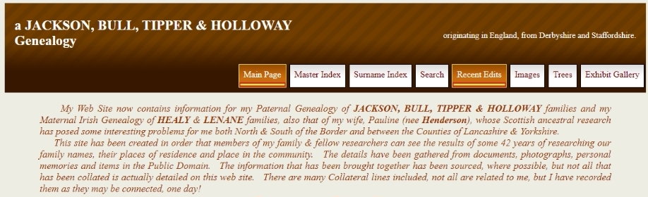 But one of Martin’s most enduring legacies will be the database and website that he began work on in 1980 after the death of our father Fred. Martin decided to research the genealogy of the Jackson and Bull families, taking our family history directly back (on our paternal grandmother’s Bull side of the family) to the late 15th century. His website contains the records of more than 39,000 people related to us in one way or other.
