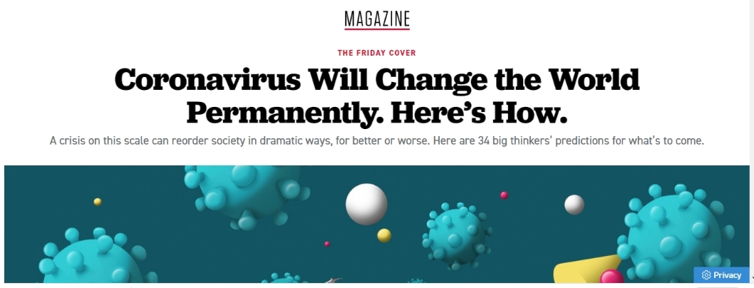 It’s interesting—but also concerning—to think what a changed world will look like. Already, a group of 34 ‘big thinkers’ have waxed lyrical on this very topic just a couple of days ago in the Politico Magazine online.