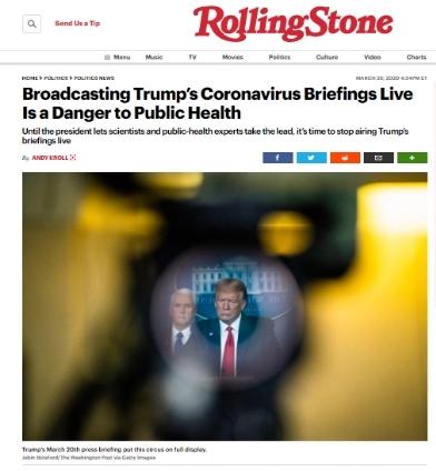And so, here is another piece from Rolling Stone (from 20 March) that Trump’s live briefings are a danger to public health.