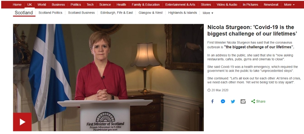But if you want to see how any leader should behave, just take a look at this address to the people of Scotland by First Minister, Nicola Sturgeon, on 20 March. What a contrast from Johnson and Trump. I’m no particular fan of Nicola Sturgeon, but she got this just right.