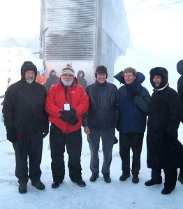 Celebrating the 20th anniversary of the Birmingham genetic resources MSc course in 1989. R to L: Trevor Williams, Jim Callow (Mason Professor of Botany), Jack Hawkes, Brian Ford-Lloyd, Mike Jackson, not sure