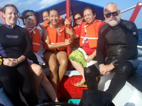With my dive buddy Katie and other members of my IRRI staff after the last dive, heading back to the dive resort for a breakfast of bacon and eggs.