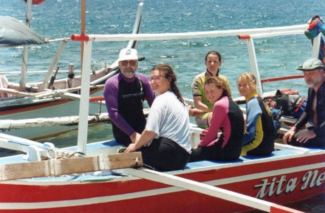 Returning from a dive in April 1995, with IRRI friends (L-R): me, Crissan Zeigler, Philippa, Kate Kirk, Clare Zeigler (Phil’s best friend), and Bob Zeigler (who became IRRI’s Director General in 2004).