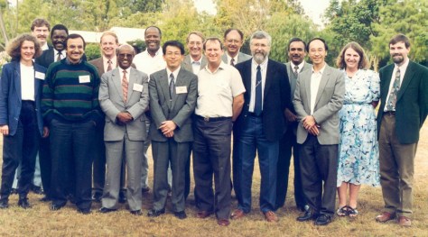 Former Birmingham MSc and Short Course PGR students (and two staff from IPGRI), at the Leipzig conference in 1996. Trevor Sykes (class of 1969) is wearing the red tie in the middle of the front row. Just two former students who attended the conference do not feature in this photo.