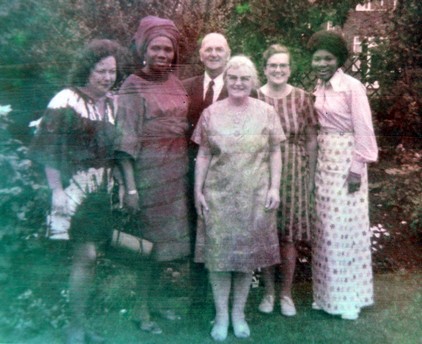 In this photo, taken during her PhD studies, Folu’s mother (who passed away in January 2018) visited her in Birmingham. Folu can’t remember the three persons between her and her mother, but on the far left is Dr Rena Martins Farias from Brazil, who was one of the first cohort of MSc students in 1969.