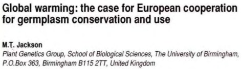 Jackson, M.T., 1995. The international crop germplasm collections: seeds in the bank! Invited paper presented at the meeting Economic and Policy Research for Genetic Resources Conservation and Use: a Technical Consultation, held at IFPRI, Washington, D.C., June 21-22, 1995