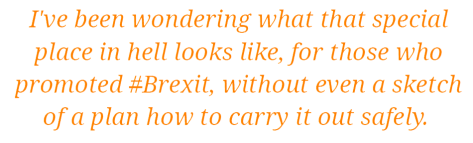 But what a thin-skinned petty individual he has turned out to be. As vacuous as the rest of his party. I’m tempted to throw something at the TV the next time he says that what the government is doing is ‘the will of the British people’. He says there’s no appetite right now for a General Election (even though one must be held by the end of the year) yet the polls indicate otherwise. And the polls also show a majority (at around 60%) in favour of re-joining the European Union.