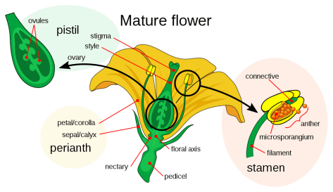 Have you ever looked closely at a ‘typical’ flower? Well, for the most part you can see the female pistil(s) comprising the style, stigma, and ovary, and the male stamens that carry the pollen.