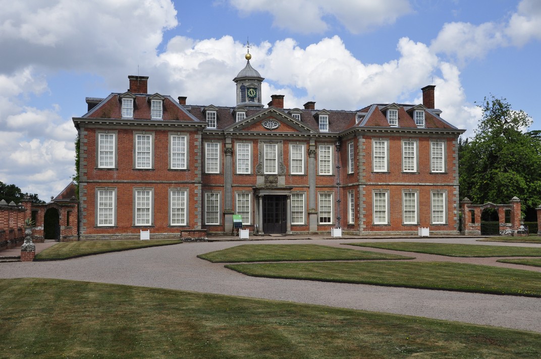 The southwest facade of Hanbury Hall and the parterre in mid-June 2020.