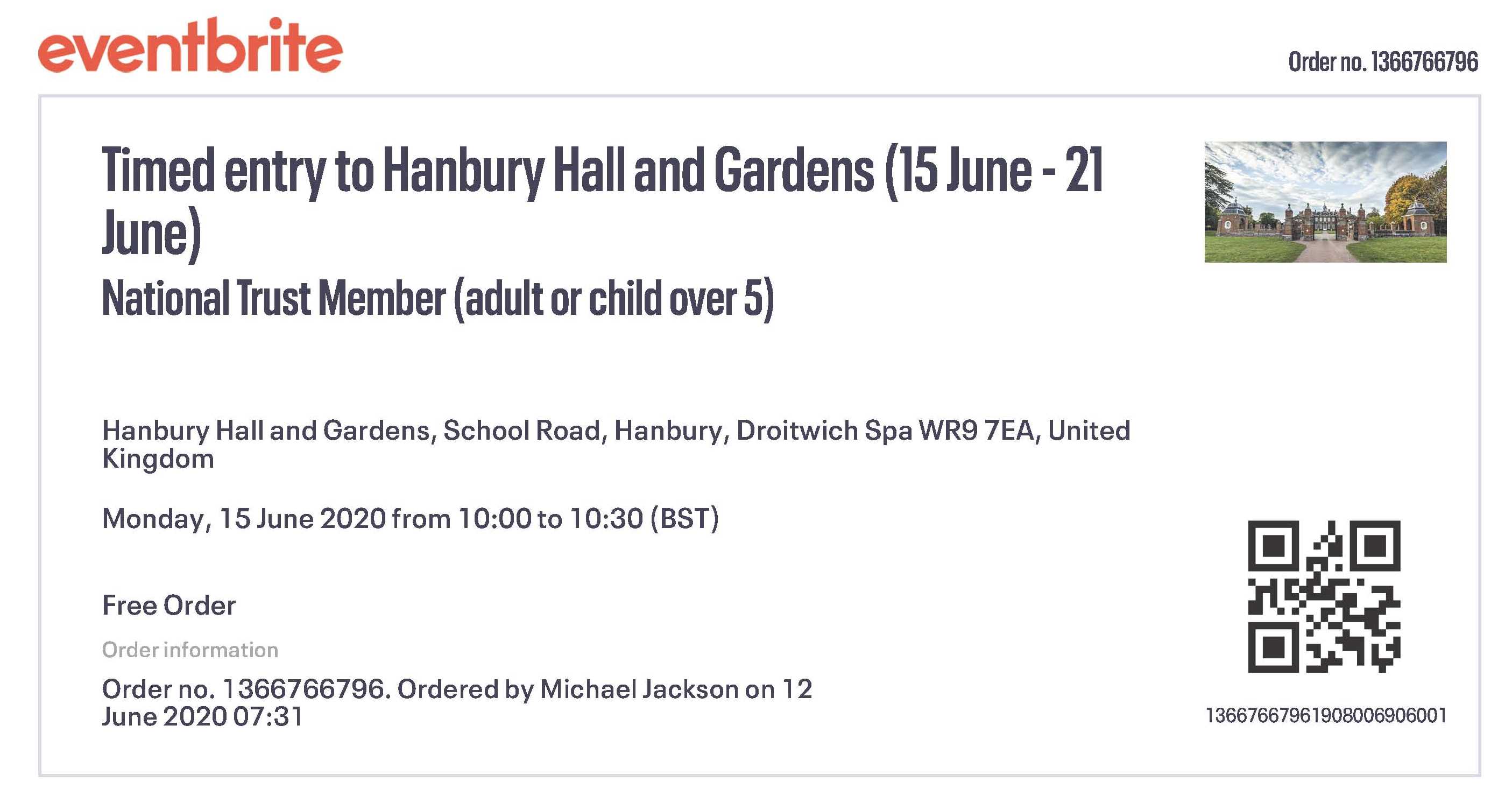 To visit any of the NT properties that are now open, it is necessary to book tickets online for a timed entry slot. Initially, demand for tickets was high and it took some patience (not one of my virtues) to log into the ticket website. Tickets are released each Friday for the following week. After several attempts, we finally secured tickets for Hanbury Hall on 15 June, being just a hop and a skip (about 7 miles) from our home in Worcestershire. We have visited Hanbury Hall more than any other NT property, often dropping by whenever the fancy took us for a stroll around its splendid parterre (one of the finest in the whole NT portfolio, in my opinion), or a leisurely walk around the park. We missed that during lockdown.