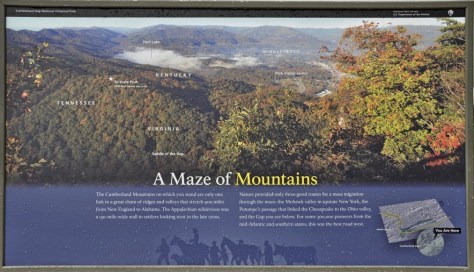 We went up to the Pinnacle Overlook, hoping to see the views over Tennessee, Virginia, and Kentucky – even as far as North Carolina on a good day. It was only a case of ‘now you see it, now you don’t’ as the clouds came rolling in, then dispersed. As a major pass through the Appalachians, the Cumberland Gap was strategically important for both the Union and Confederacy during the Civil War of the 1860s, and changed sides every so often. There is still evidence of military occupation high on the Overlook.