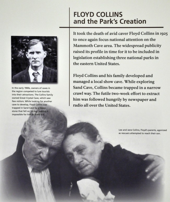 There has been a long history of exploration and commercial exploitation of the caves, and of course millennia of occupation. There has also been tragedy, with one enthusiastic caver Floyd Collins becoming stuck in a passageway in 1925, and dying before he could be freed.