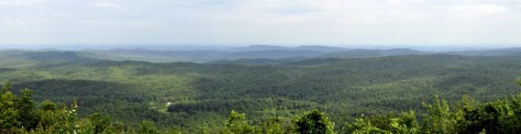 The winding 35 mile climb on GA60 into the Chattahoochee (map) began at Stonepile Gap. With towering trees either side of the road there were few places to stop or see out over the landscape. One of these however was Chestatee Overlook, where we had a first real view of the rolling—and heavily forested—Appalachians.
