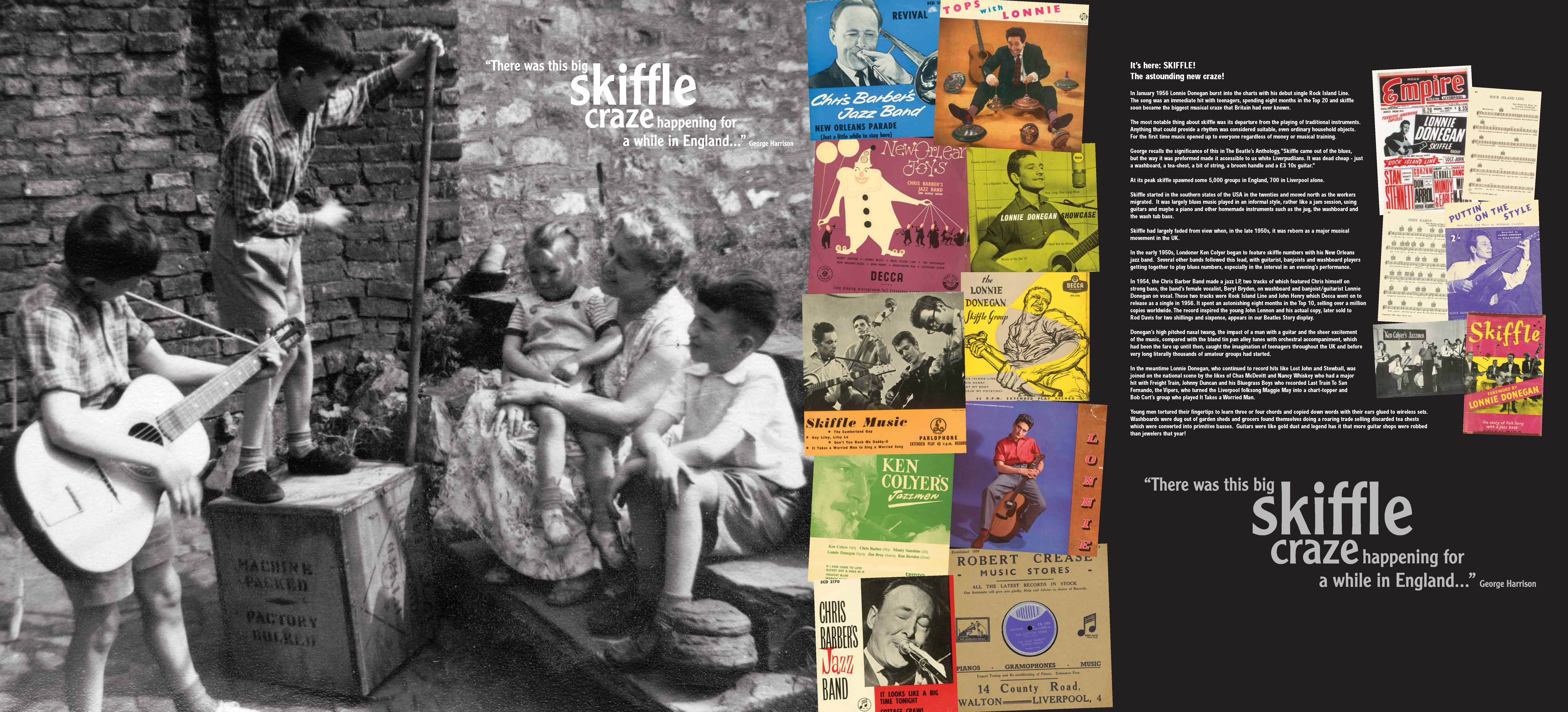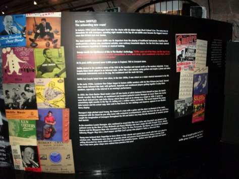 Now, back to The Beatles Story. In developing the exhibits the curators wanted to tell the story of skiffle and how that had been a major influence on budding musicians in the 1950s, including The Beatles. And trawling the Internet, they came across the photo of Ed and me on his personal web site, and asked permission to use it. Below is the first version of the exhibit display they shared with us, but it has changed in some of the text and captions subsequently.