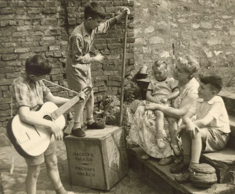 If you visit The Beatles Story in Liverpool, you will see this photo (taken in about 1958) in one of the exhibits. Two small boys – one playing guitar, the other (literally) on tea chest bass – entertaining their Mum and Dad and two friends, Geoff and Susan Sharratt. That’s my elder brother Ed and me on guitar and bass. The reason why will become apparent as you work your way through this post. Incidentally, through this post, I’ve reconnected with Geoff and Susan after more than 50 years!