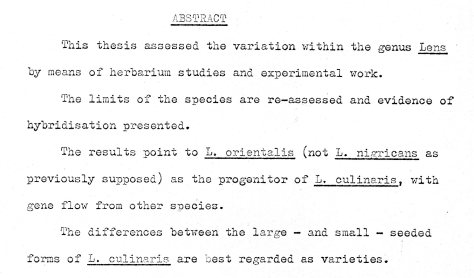 In the field of conservation and use of plant genetic resources, Vavilov is a giant. His scientific ideas about crop diversity have mainly stood the test of time. The collections he made are still held in the genebank that now bears his name. And his descriptions of crop diversity (I’ll never forget those of the rosaceous tree fruit forests—apples, pears and the like—in the mountain foothills of Kazakhstan), have inspired later generations of germplasm scientists, me in particular. As an MSc student, I wrote a dissertation on the origin of lentils, Lens culinaris. One of the major publications I had to consult was a monograph by Russian scientist Elena Barulina, Vavilov’s second wife.