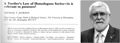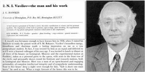 They discussed Vavilov’s ideas on the origin of crop plants and his theory of centers of diversity, his ‘Law of Homologous Series’ (which I applied in a paper on potatoes I presented at a Vavilov Centenary Symposium in 1987), the Russian system of potato taxonomy (which Jack initially used but found it over-complicated), and comparisons of British and Soviet agriculture.