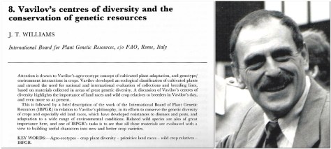 Vavilov was highly respected in the West, and he visited the UK spending time in the early years of the last century at the John Innes Horticultural Institution near London. His study of crop variation also opened new perspectives on the nature and distribution of genetic diversity in crop plants and their wild relatives, and where crops were domesticated thousands of years ago.