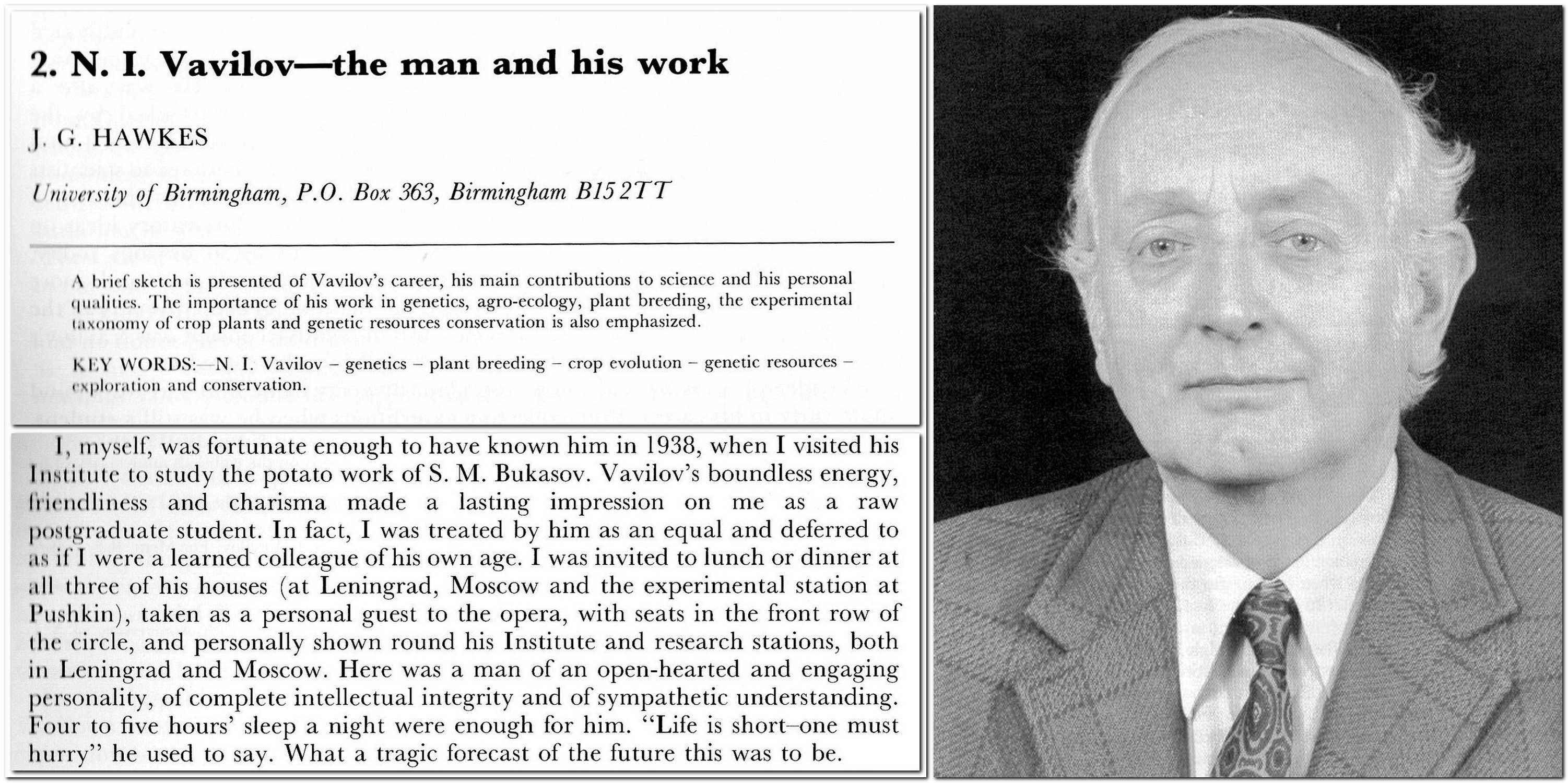 So, what was Vavilov like as a man and scientist? Having spoken at length with Professor Jack Hawkes and Dr John Niederhauser about their visits to Russia in the 1930s, and meeting Vavilov, I almost feel that I knew him myself, albeit vicariously.