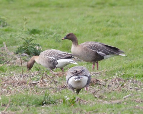 But perhaps the most impressive sight, to date, have been flocks of pink-footed geese. We saw them first in a field (together with a small flock of about 30 curlews) near Seaton Sluice back in the Autumn. Then, on a walk close to home I could hear them honking in the distance and, gaining some height on the spoil heap at the former Fenwick Colliery, we could see a flock of several hundred grazing in a nearby field.