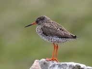 On the coast we see the usual range of waders such as oystercatchers, ringed plovers, sanderling, dunlin, and turnstones. One of my favorites however is the redshank (right), easily spotted because of its bright orange-red bill and legs. And, of course, several species of gull.