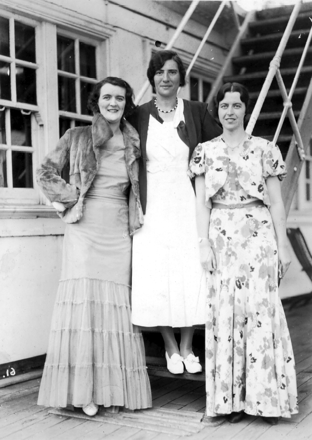 Mum with her future in-laws, Thomas and Alice Jackson, on board ship in Southampton Docks