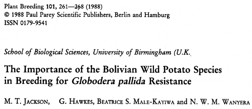 Other international efforts like the Crop Wild Relatives Project (supported by the Government of Norway), and managed by the Crop Trust with the Royal Botanic Gardens, Kew have focused attention on the importance of conserving the wild relatives of crop plants as they are often genetically endowed with traits not found in their domesticated derivatives. My own experience studying nematode resistance in wild potatoes from Bolivia for example illustrated the importance of wild species for crop improvement.