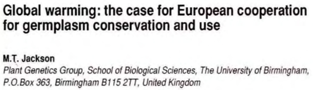 I’ve been publishing about climate change and the value of plant genetic resources for over 30 years, beginning when there was far more skepticism about this phenomenon than today. At a conference on Crop Networks, held in Wageningen in the Netherlands in December 1990, I presented a paper outlining the need for collaborative research to study germplasm collections in the face of climate change.