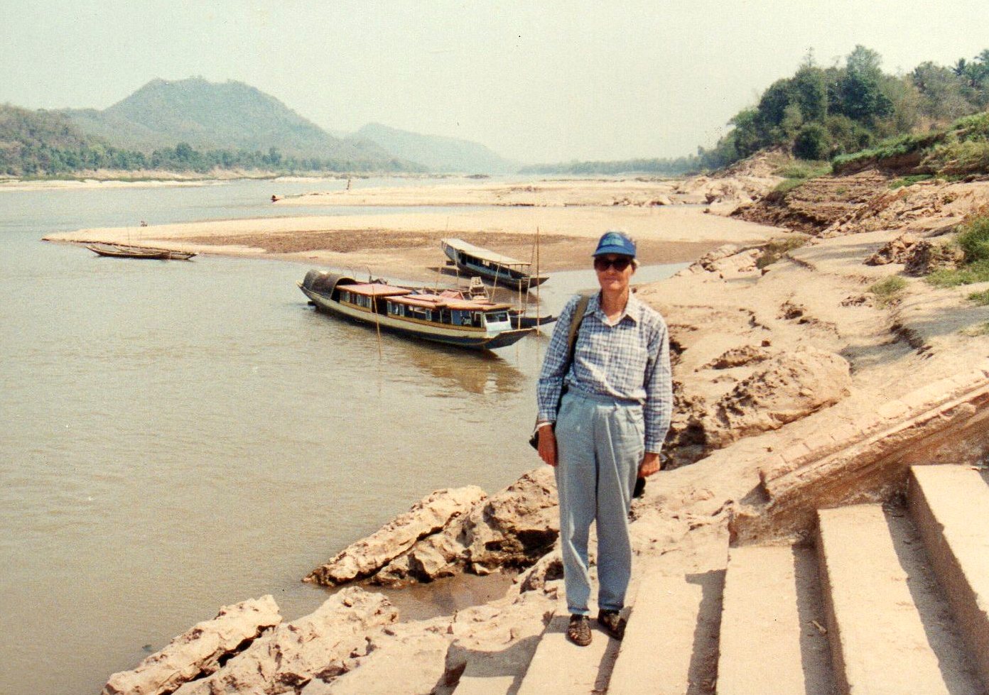 At the landing stage where we took our boat. You can see several of these boats behind Steph, looking north along the Mekong.