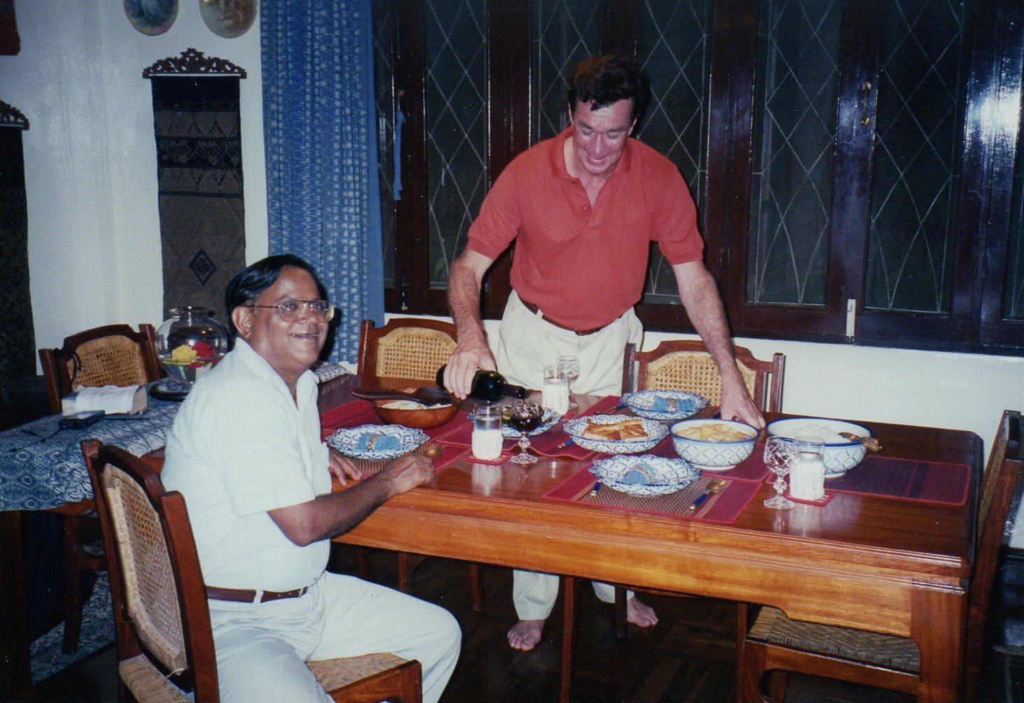 Enjoying dinner with Appa Rao and John Schiller at John’s home in Vientiane.