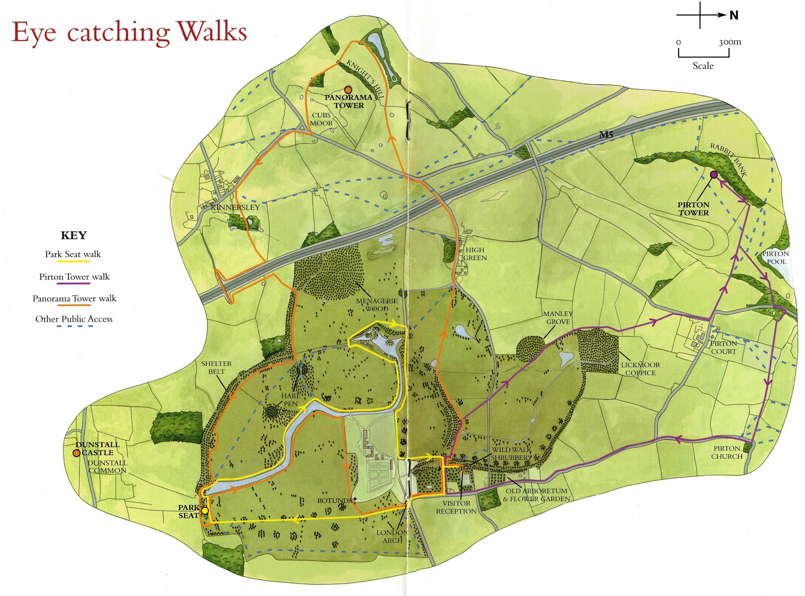 Beyond the park, and towards the west and the Malvern Hills, stands the Panorama Tower (B on the map).