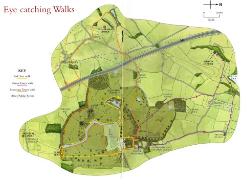 So if you want to enjoy some culture and the opportunity for a brisk and bracing walk, Croome Court and Park is the place to visit. The photos in this post were all taken along the Park Seat Walk (in yellow on the map below, around 3½ miles).