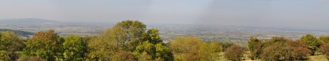 This is the view from Broadway Hill, looking north over the Vale of Evesham, with Bredon Hill on the left.