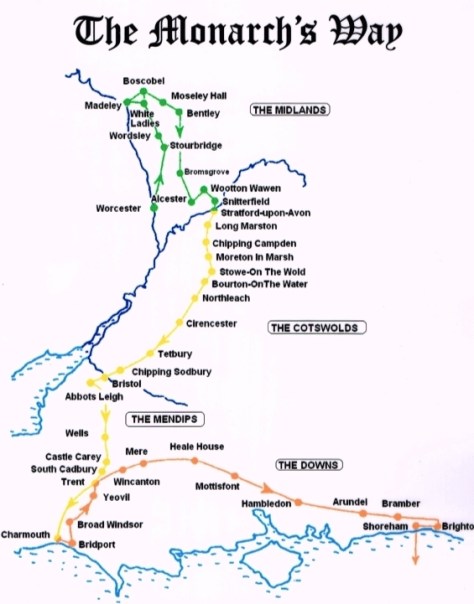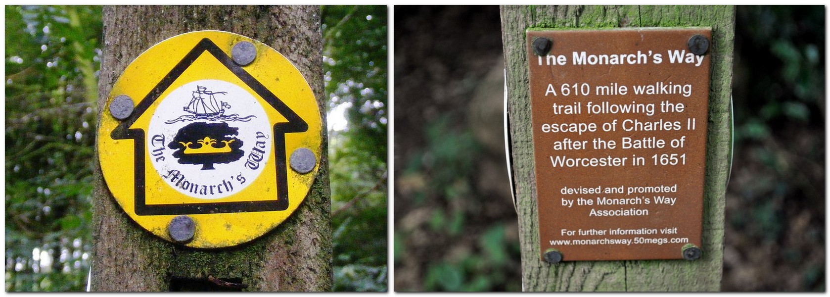 Today, the Monarch’s Way is a long distance footpath (>600 miles) that traces the route of Charles II’s escape after his defeat at the Battle of Worcester. Earlier this year we visited Boscobel House in Shropshire (the furthest north Charles fled) where he hid in an oak tree.