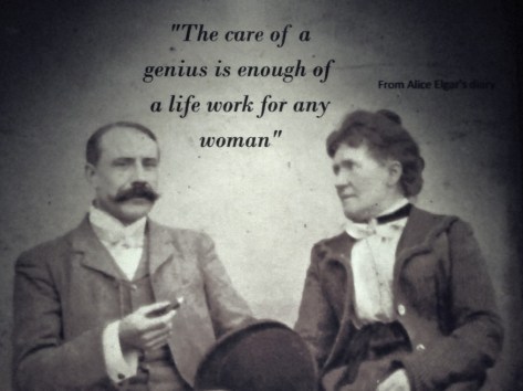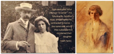 Inside the Visitor Centre, an exhibition illustrates highlights from Elgar’s life and career. He married Caroline Alice Roberts in 1889. Her parents disapproved of Elgar—a ‘jobbing musician’—and did not attend their wedding in the Brompton Oratory in London. I hadn’t realized until yesterday that Elgar was a Catholic.